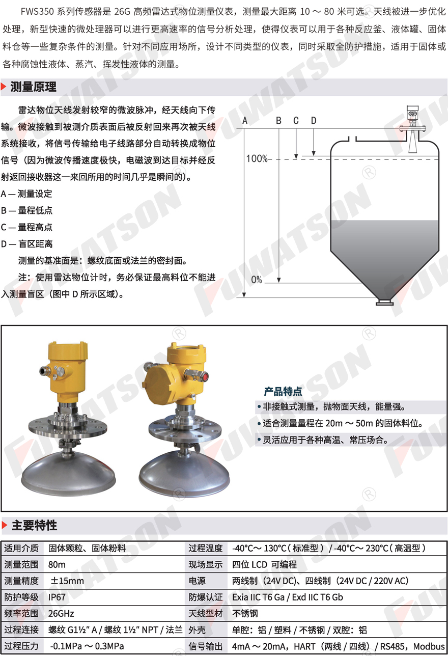 FWS352 26GHz高(gāo)頻雷達物(wù)位計