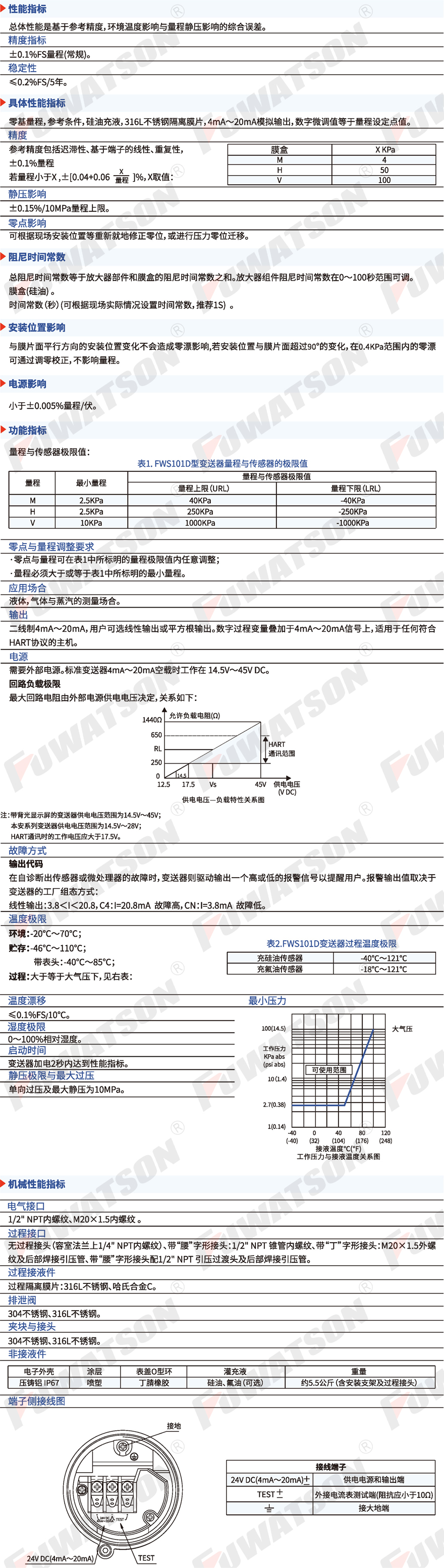 FWS101D系列測量(liàng)精度0.1%FS,最高(gao)0.075%FS;過載能力(li)強,單向壓(ya)力可達10MPa;可(ke)270º旋轉的就(jiu)地顯示屏(píng)幕;方便的(de)就地零點(dian)、滿點設置(zhi)調校🤟功能(néng);擁有标準(zhǔn)💃🏻HART總線通訊(xùn)模式與NB-IoT窄(zhai)帶物聯網(wang)無線通訊(xun)...