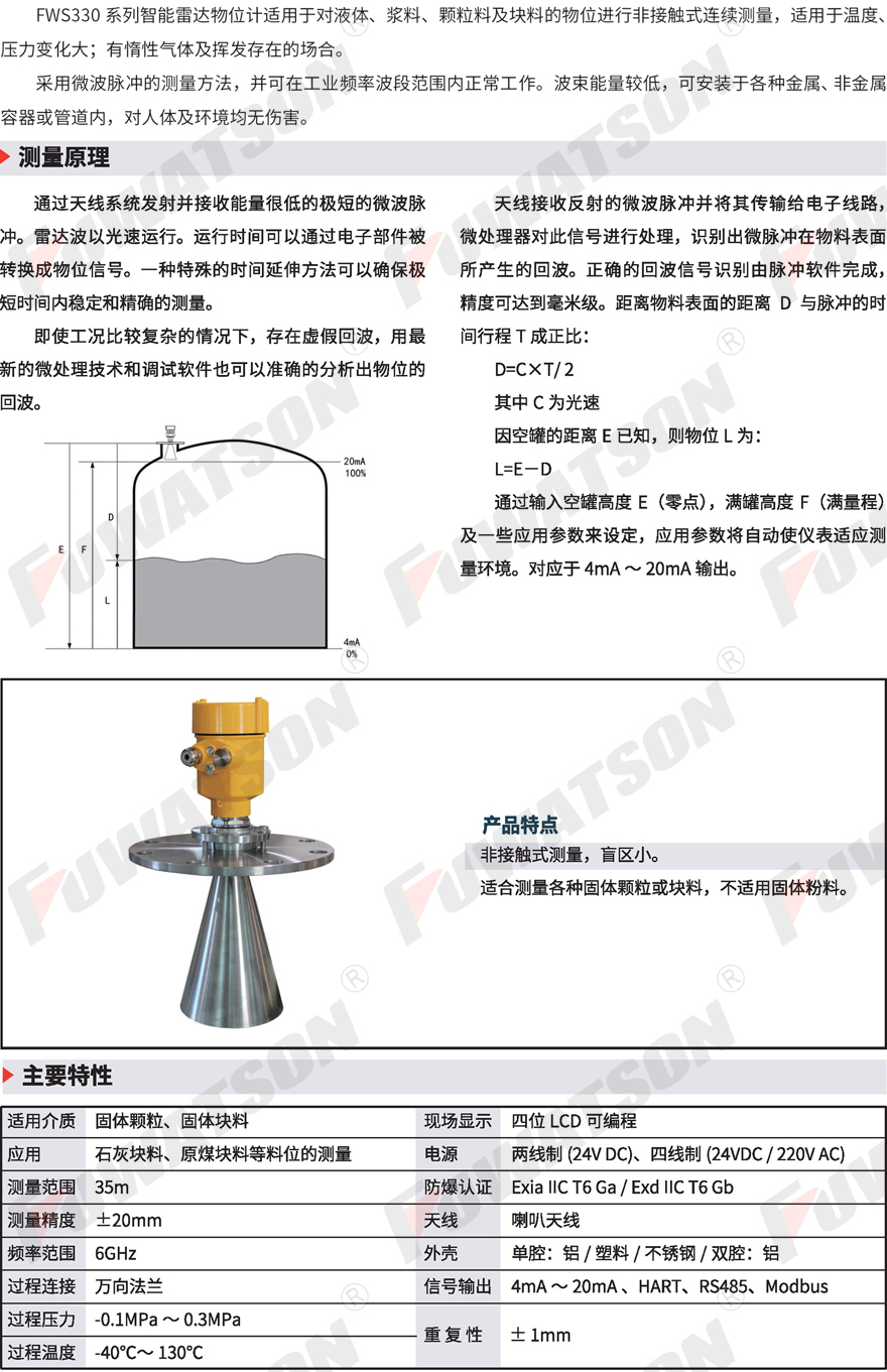 FWS333C 6GHz智(zhi)能雷達物(wù)位計